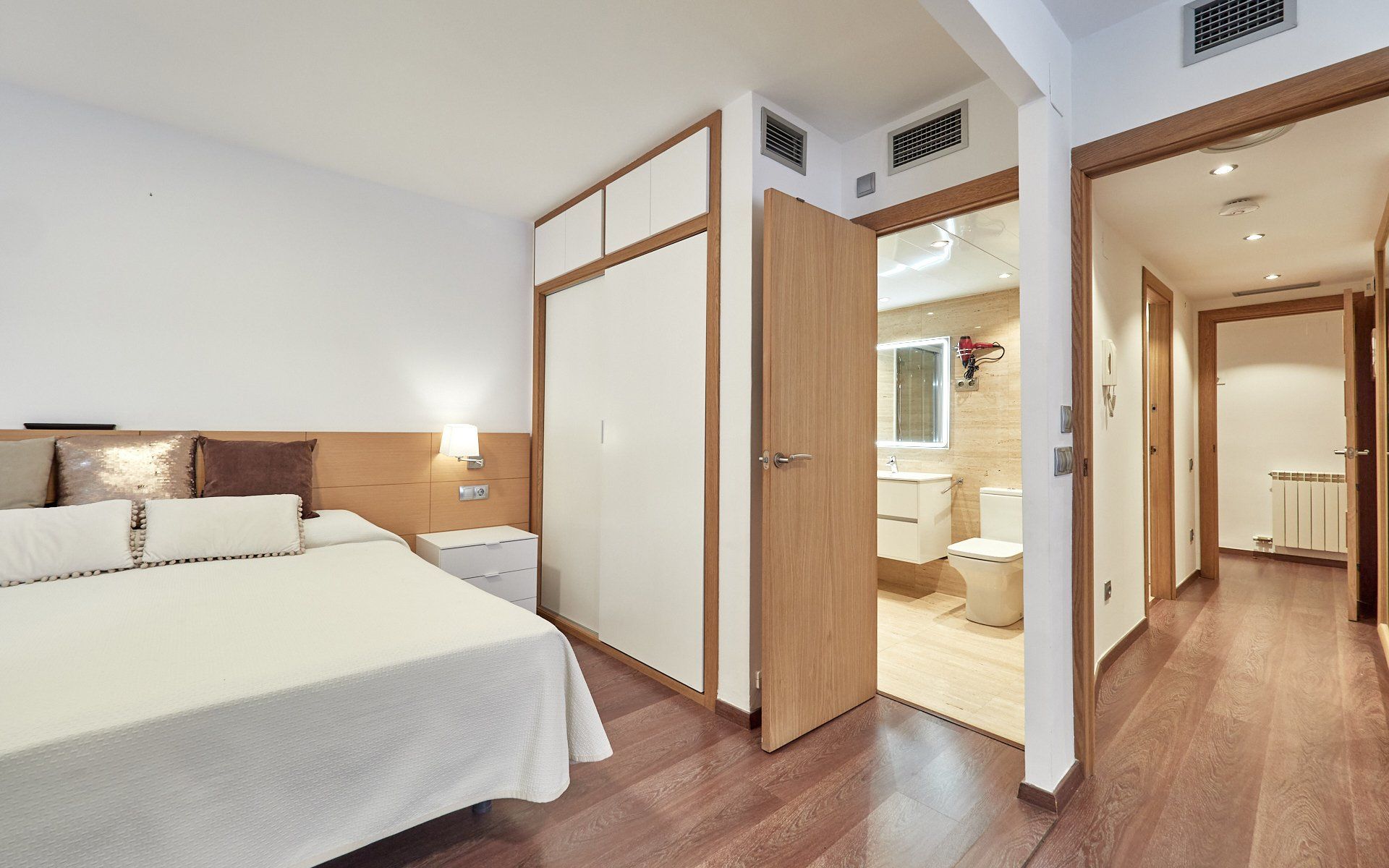 - Property with a built area of 123 m2 with a communal solarium. Wooden interior carpentry and exterior climalit aluminium carpentry, built-in wardrobes, parquet flooring, air conditioning, gas heating, reinforced door and soundproof walls. It is sold without any furniture.