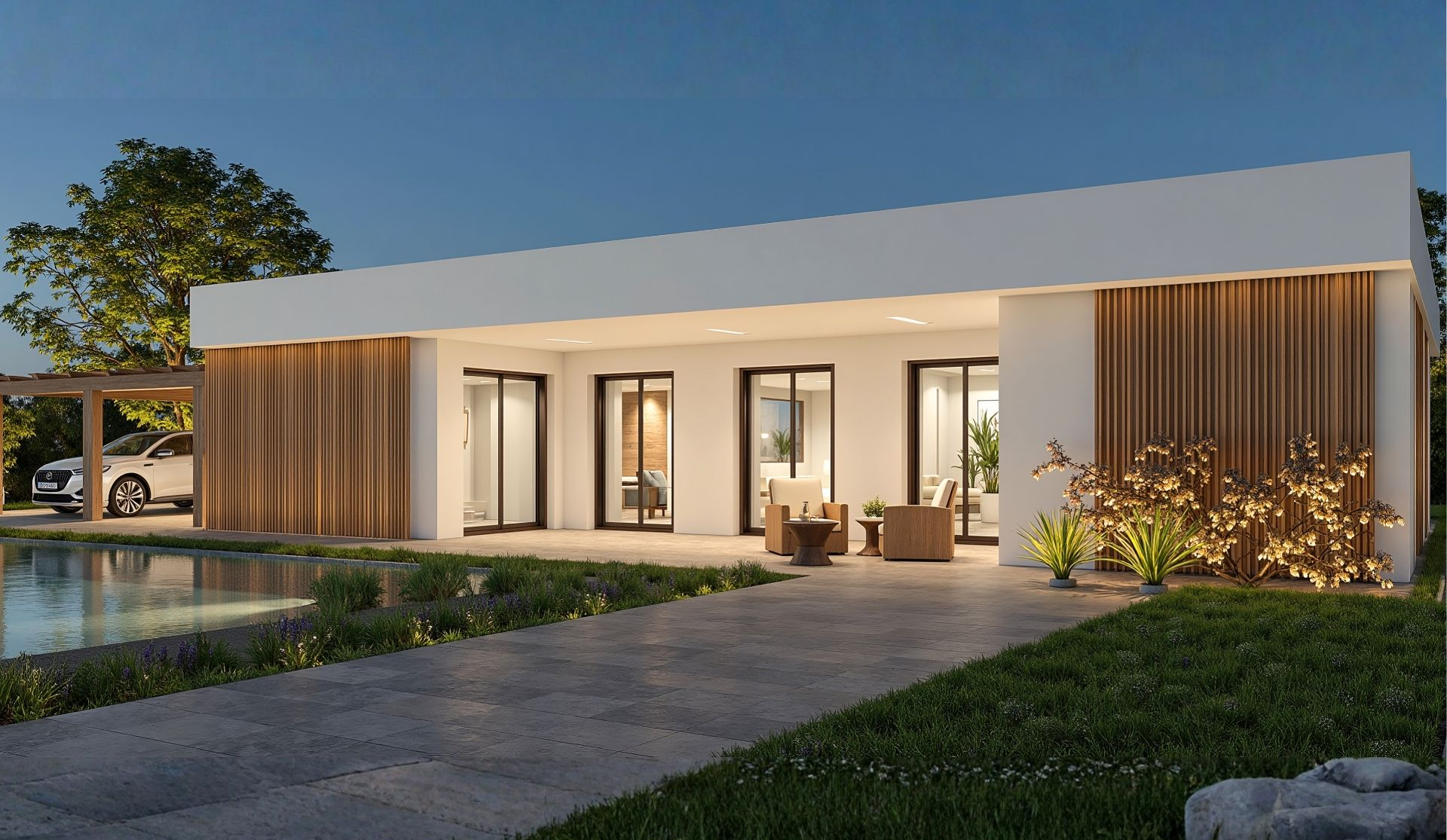 És un pack claus en mà que inclou terreny, casa tota en una planta (que encara no està construïda) i la gestió de tots els passos i papers de principi a fi.
